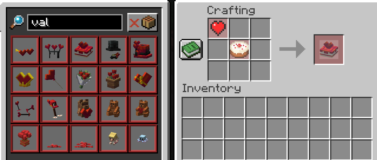 Agregué algunos items por San Valentín (sí… hasta 18 de febrero… pero TODO febrero cuenta), para craftearlos necesitarás corazones, que puedes obtener simplemente jugando :) cada cierto recibirás una cantidad random de corazones en tu inventario.